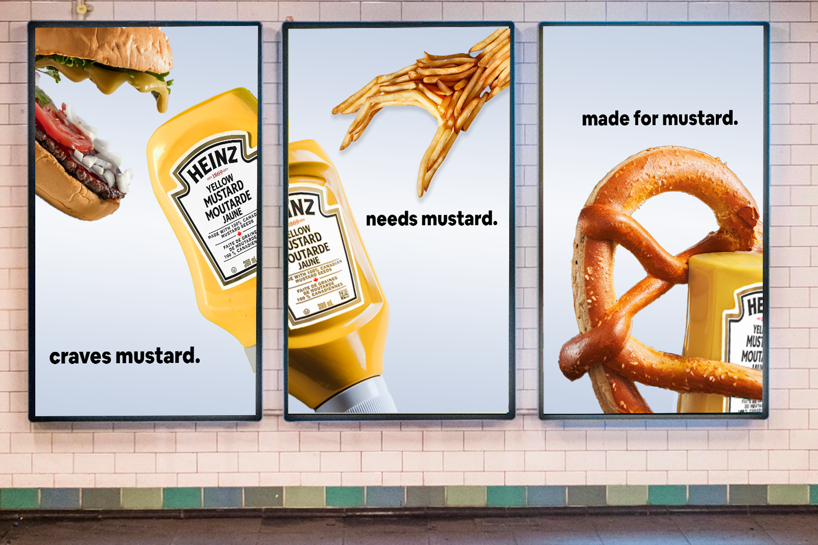 Heinz Mustard had the interesting problem of being well known but simultaneously over shadowed by Heinz' flagship Ketchup. While people may have mixed feelings about mustard, their foods have made up their minds.
